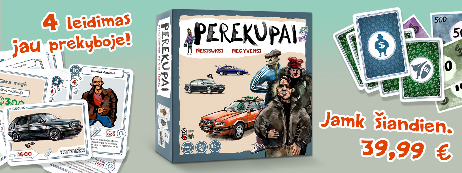 Mūsų pirmas žaidimas „Perekupai“ iš karto tapo vienu populiariausių stalo žaidimų Lietuvoje. Nuo jo ir prasidėjo mūsų veikla.